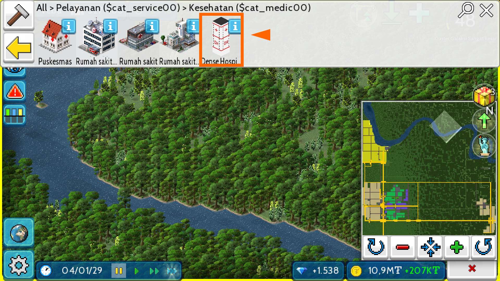 Plugin sudah terpasang. mainkan TheoTown untuk menikmati plugin. Daftar plugin bisa dilihat di kelompok kategori yang sesuai dengan plugin yang diinstal. Misalnya, jika plugin yang diinstal adalah rumah sakit (kesehatan), maka carilah di bagian Pelayanan (Service) » Kesehatan (health) » Plugin yang diinstall